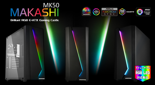 ENERMAX(本社:台湾)日本法人の株式会社クーラージャイアント(本社:埼玉県川口市)は、 フロントに稲妻をイメージしたアドレッサブルRGB LEDストリップスを搭載し、E-ATXマザーボードに対応したゲーミングPCケース MAKASHI MK50 / ECA-MK50-BB-ARGBを2019年3月16日に発売いたします。